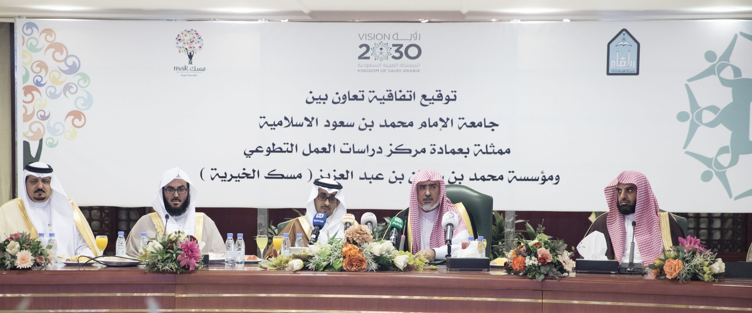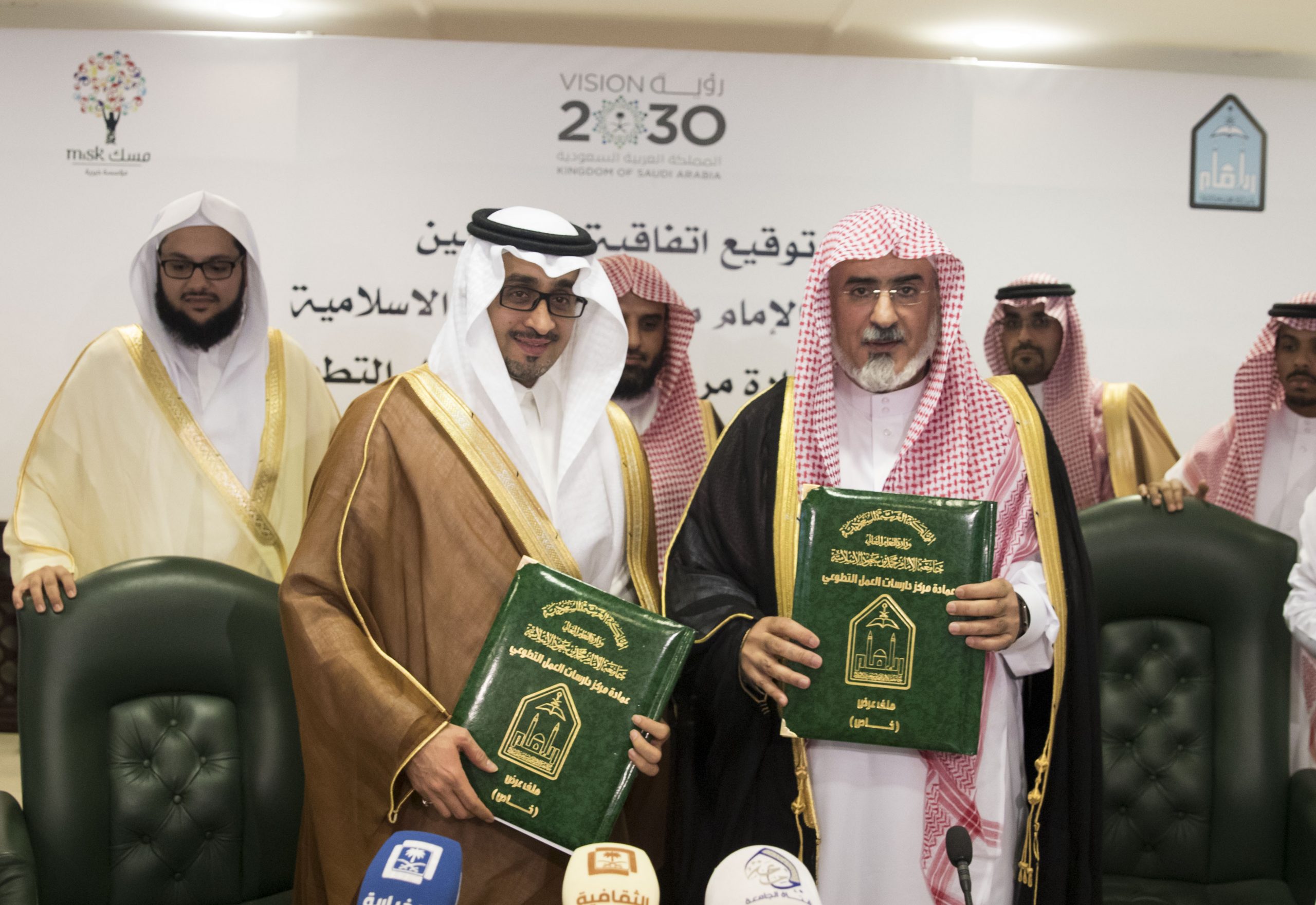 The Prince Mohammed bin Salman bin Abdulaziz Foundation “MiSK” signed a cooperation agreement with Imam Muhammad ibn Saud Islamic University, represented by the Deanship of Voluntary Work Study Center, aiming to develop the non-profit sector, boost volunteerism, train volunteers and workers of humanitarian work and social services, and cooperate to determine the priorities of society needs in the cultural, intellectual, social, and humanitarian work.
